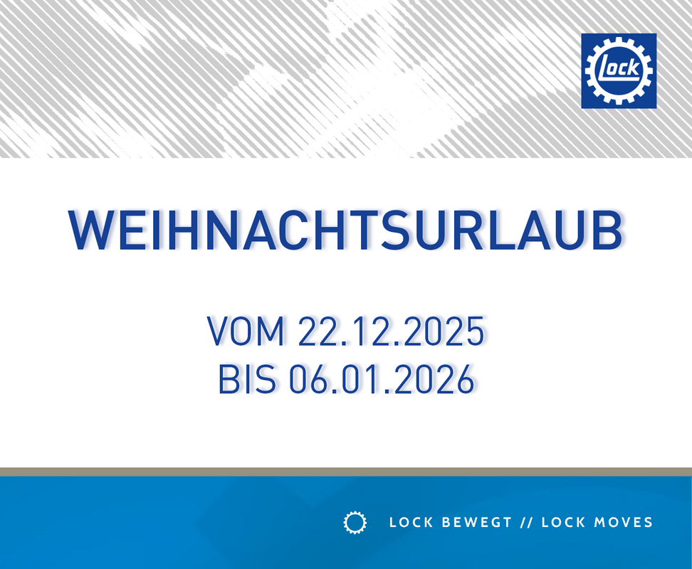Wir möchten Sie darauf hinweisen, dass unser Betrieb in der Zeit vom 22.12.2025 bis 06.01.2026 geschlossen ist. Gerne sind wir ab 07.01.2026 wieder für Sie da!