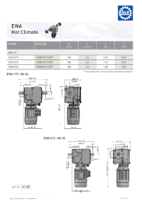 EWA Hot Climate Versión Nº de tipo T* [Nm] n [1/min] I [A] P [kW] 400 V 3~ EWA 0173 12508.0173.3227 150 2,6 0,90 0,39 EWA 0313 12508.0313.3227 300 3,2 1,10 0,47 EWA 0743 …